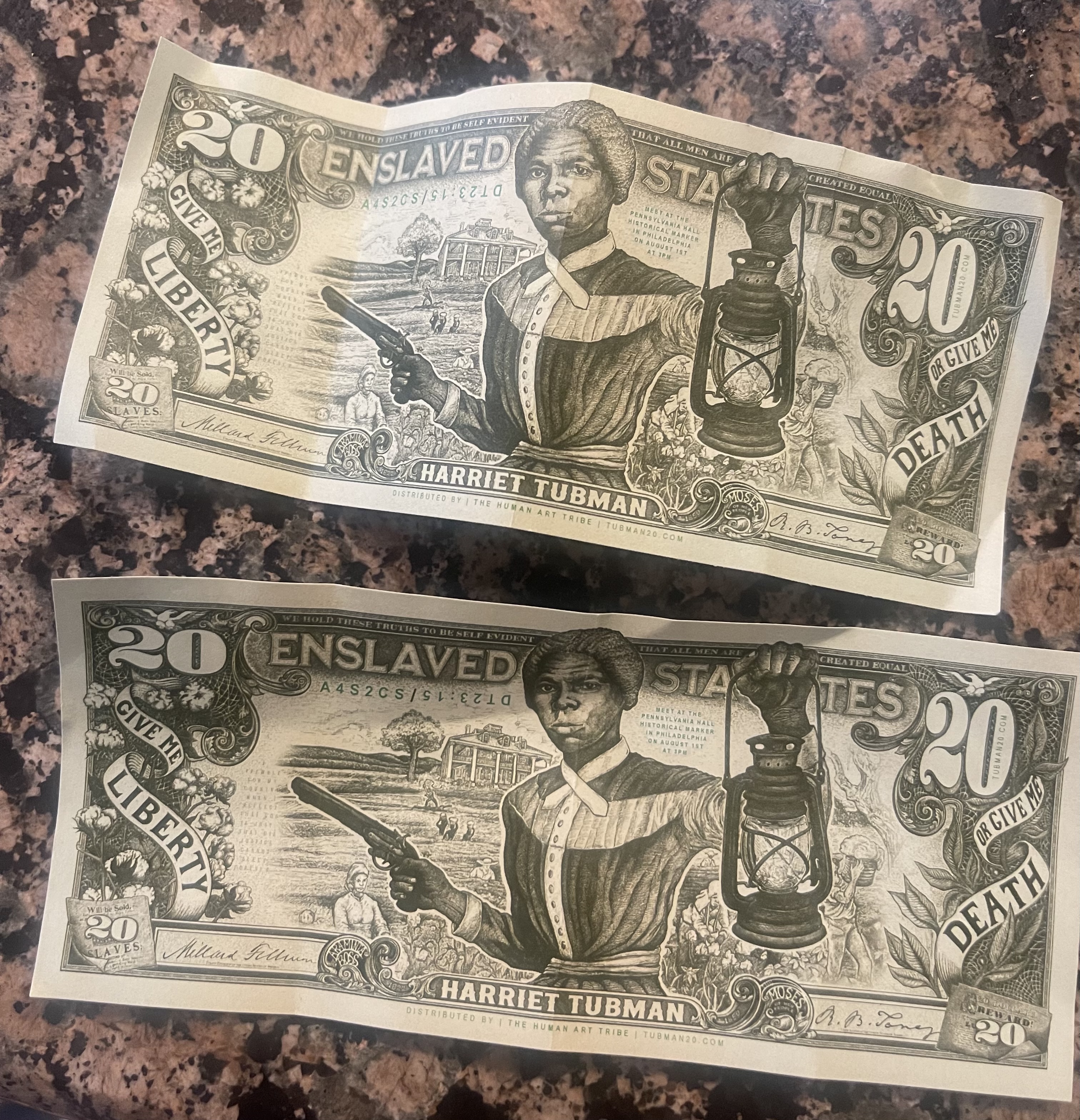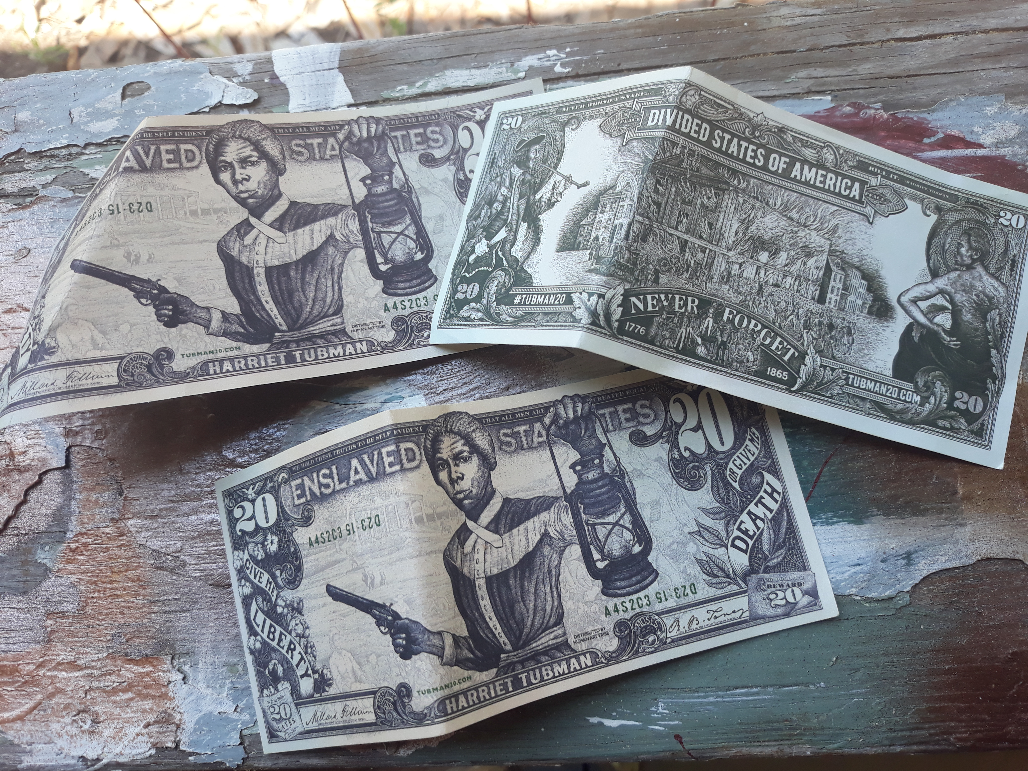 Photos of the Tubman bills, submitted by the community.
